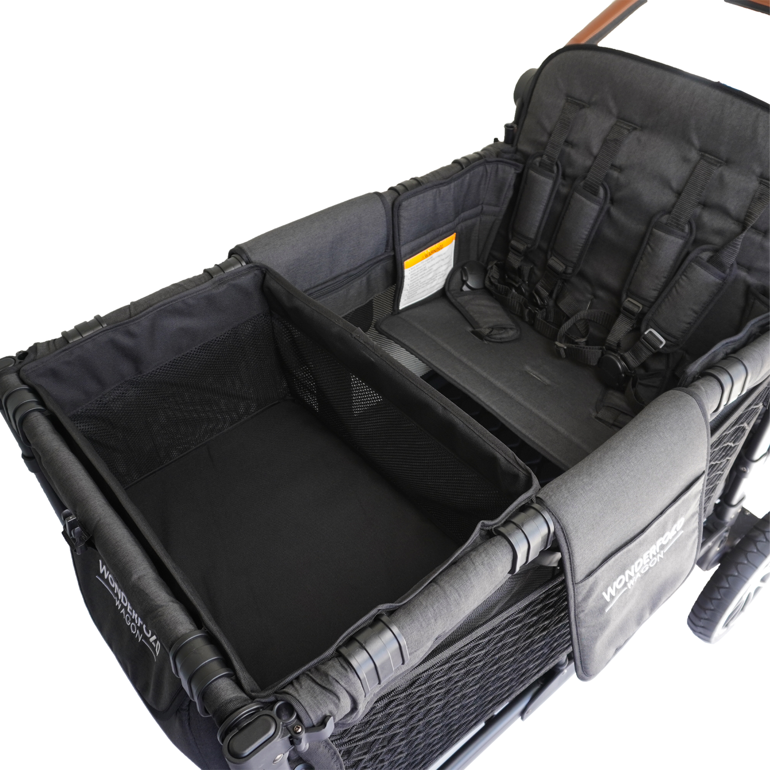 Save yourself time and energy when shopping! Instead of using a germy shopping cart that only fits one child, turn your wagon into a shopping cart! The WonderTote creates an extra compartment that can be used in place of one of the seats. You'll have room for all your essentials though we cannot recommend using the WonderTote for little ones.