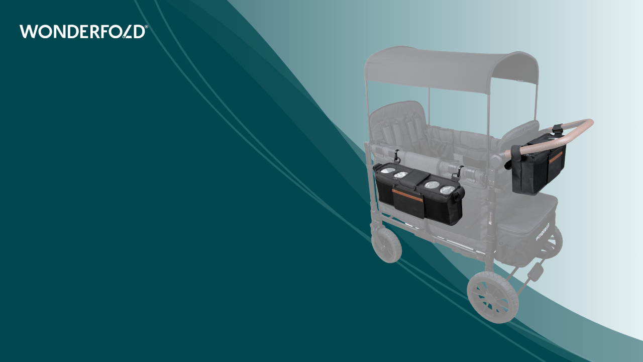 Juggling drinks, wipes, and snacks? The Universal Parent Console keeps everything within reach with room for your keys, phone, and credit cards; designed to fit WonderFold stroller wagons and is compatible with most other stroller wagons on the market.